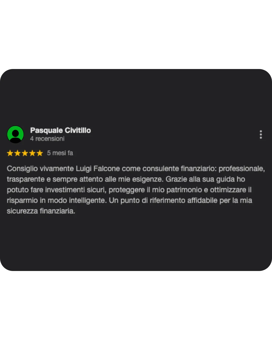 Sono Luigi Falcone, consulente finanziario specializzato nel sistema previdenziale svizzero per italiani in Svizzera.